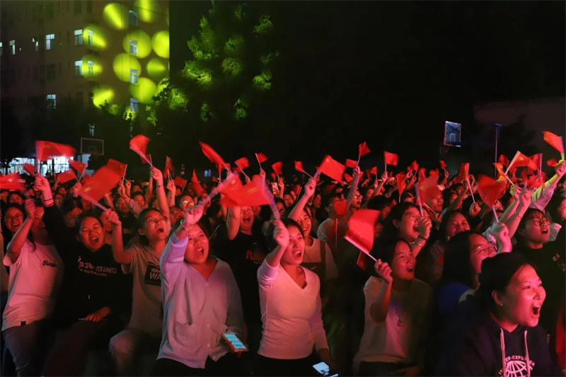 歌曲《如愿》仿佛穿越时空的阻隔,以跳跃的音符向先辈诉说盛世繁华如你所愿。师生千人挥舞着五星红旗合唱《歌唱祖国》,歌声激昂、旋律高亢,为晚会划上完美的句号。