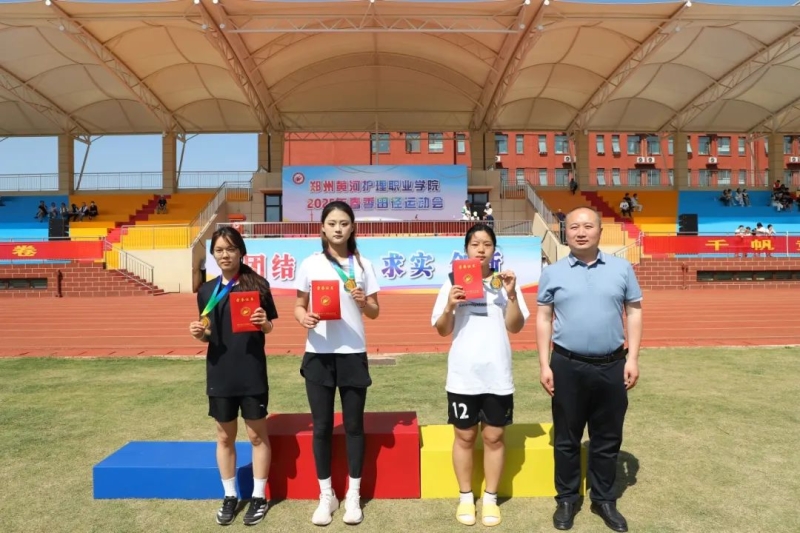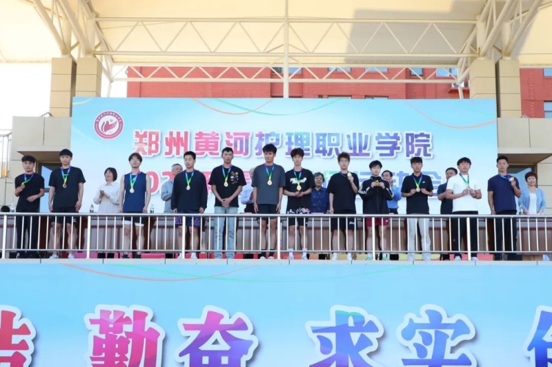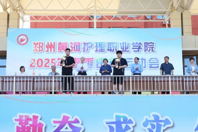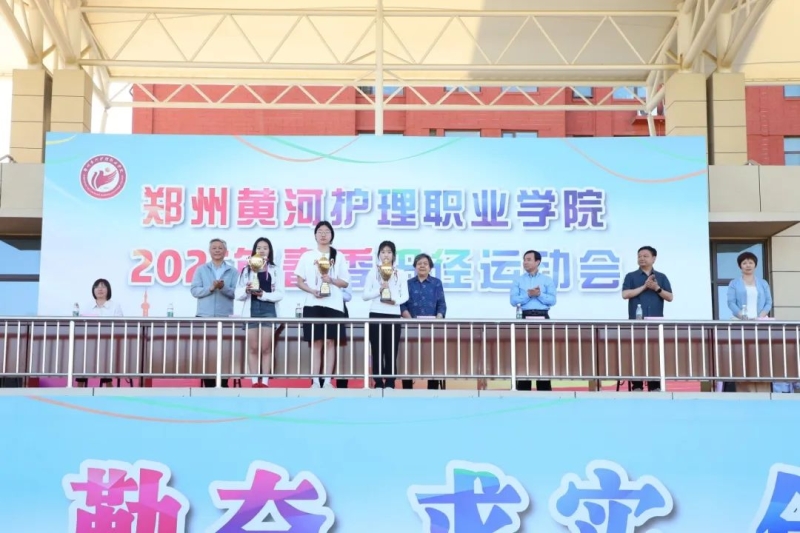 副校长、新密校区管委会主任崔明辰宣读方队入场式评选结果和运动会项目获奖名单,与会领导分别为获奖者代表颁奖。