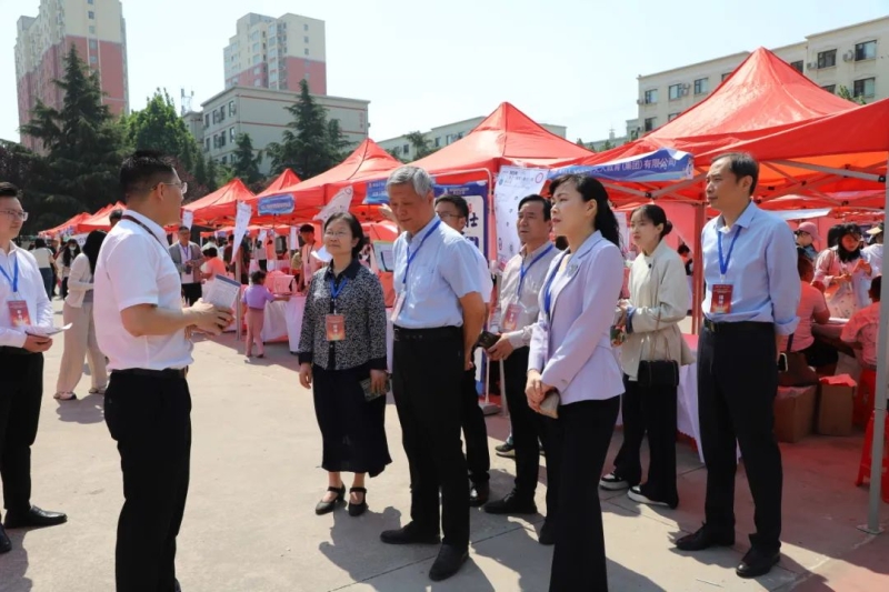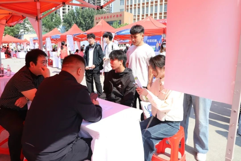 为搭建优质就业平台,促进毕业生高质量就业,5月10日,beat365在高新校区举办“豫荐未来 青春启航”2025届毕业生就业双向选择洽谈会。学校领导刘芳、张淑爱、崔明辰、张臻、杨晓燕到现场指导工作。各学院负责人、主管实习就业的老师、毕业班辅导员,就业创业指导服务中心、武装部等相关部门人员全程参与,为学生提供政策咨询、简历优化指导、征兵入伍等一站式服务。