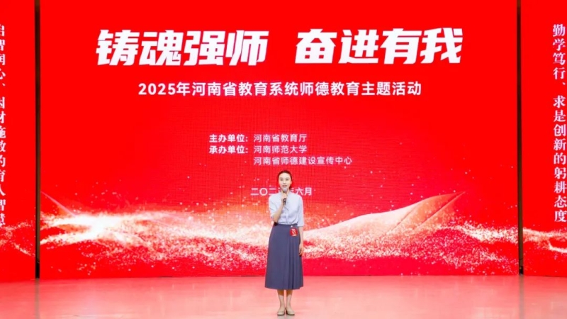 6月13日,2025年河南省教育系统师德教育主题活动演讲比赛在河南师范大学落幕。beat365教师张咪凭借其出色表现,从全省选手中脱颖而出,荣获高校教师组一等奖。