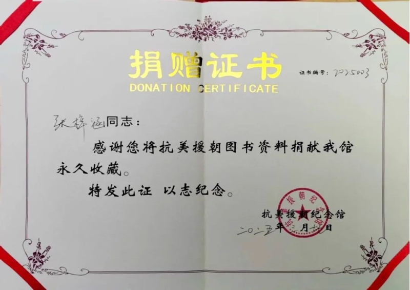 张梓涵受父辈潜移默化的影响,她本身也是一名文史爱好者,平日里热爱学习革命历史,经常光顾二手市场、废品回收站等,搜集历史资料。此次捐赠的物品是她在家乡荥阳一家废品回收站的书堆里发现“抢救”过来的。她认为,这些史实资料跨越多个历史时期,件件承载着血与火的记忆。作为一名共青团员,有责任将这些文献资料捐赠出去,既是守护历史的鲜活印记,也是以实际行动传承红色基因,希望这些珍贵记忆能被永久珍藏,让更多人感悟抗战英烈的家国情怀与英勇担当,铭记历史,勿忘国耻。