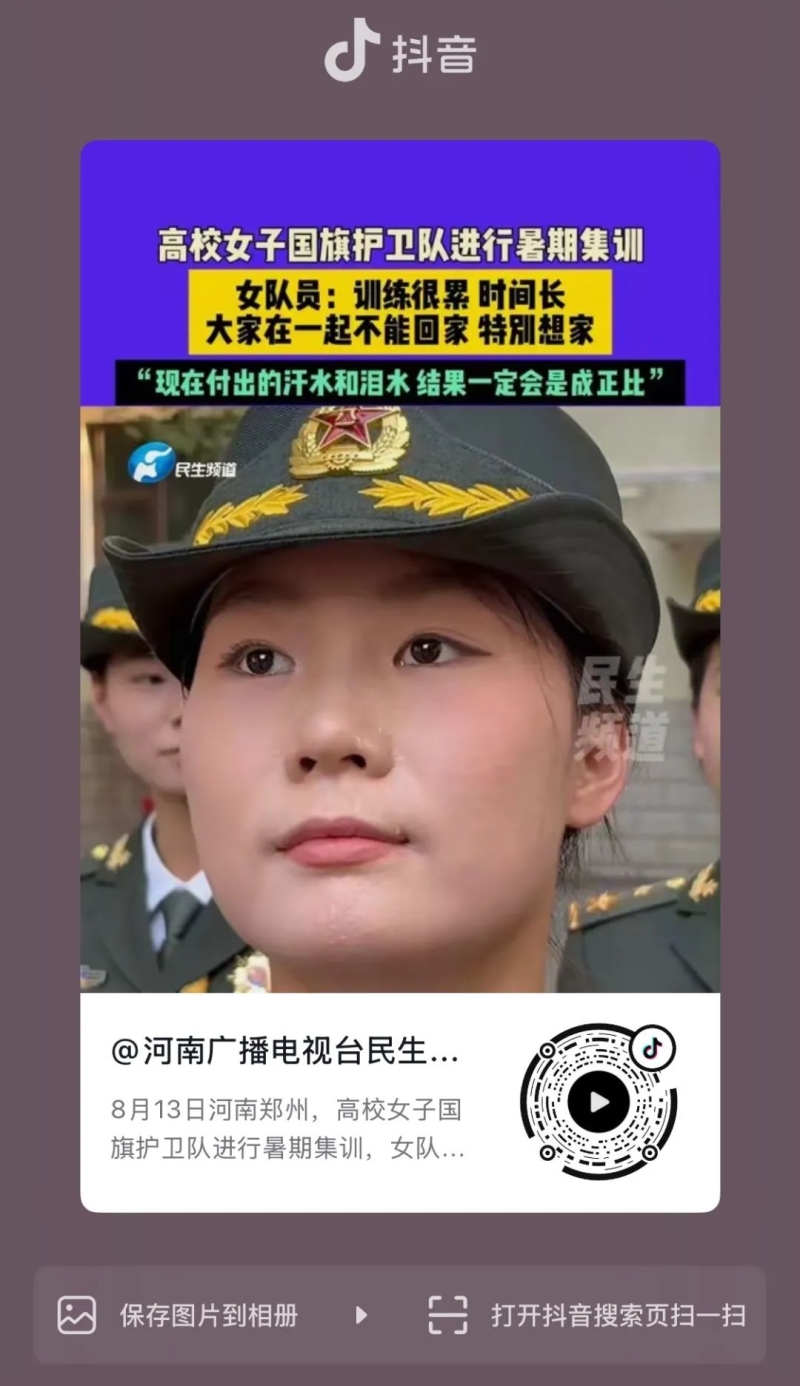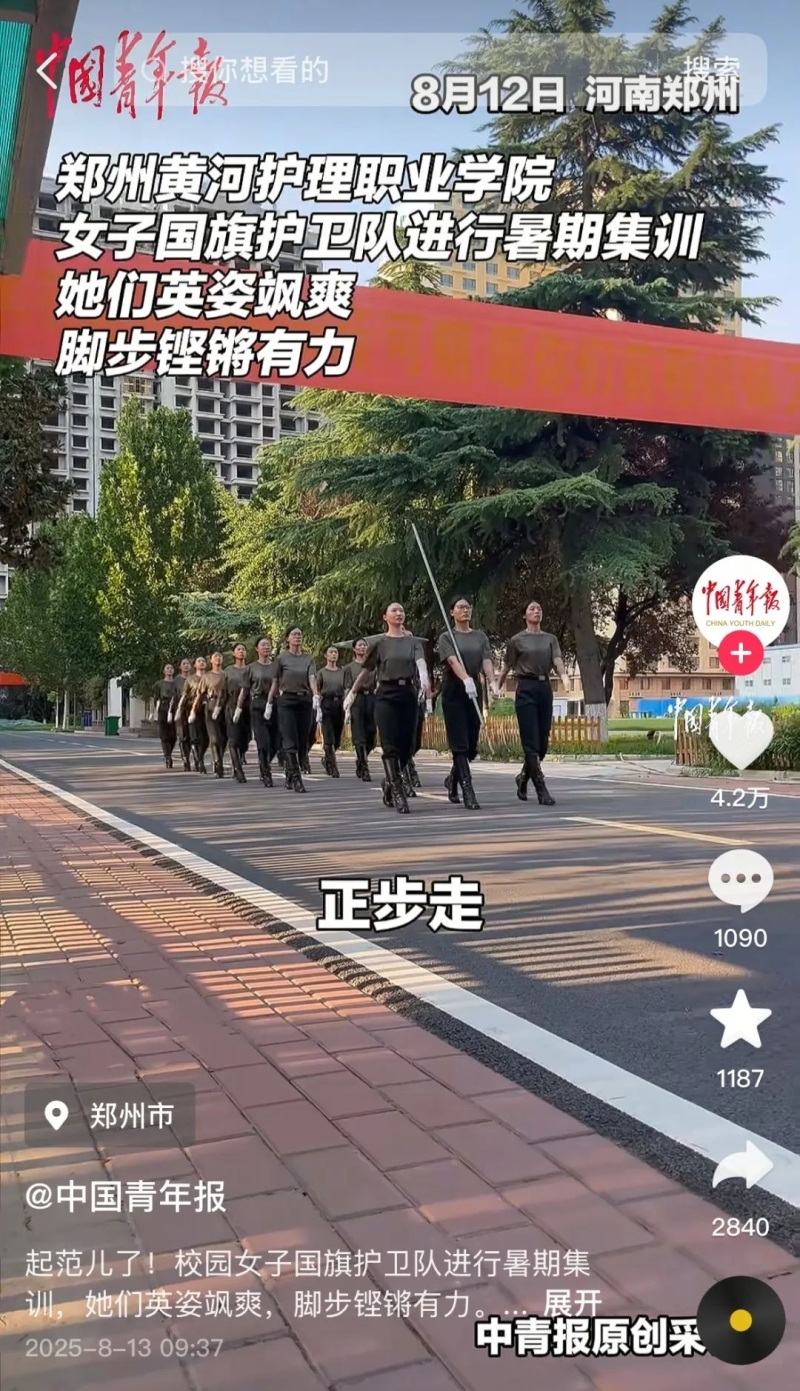 近日,beat365武装部八一连女子国旗护卫队暑期集训视频凭借硬核实力“出圈”—— 中国青年报官方抖音号、郑州共青团官方视频号相继转载推送后,迅速掀起关注热潮。镜头中,姑娘们烈日下的坚毅身影与整齐划一的训练动作,尽显责任与担当,收获网友们的广泛认可,视频点赞量超数万,累计浏览量更是突破百万,成为夏日里一道亮眼的青春风景线。