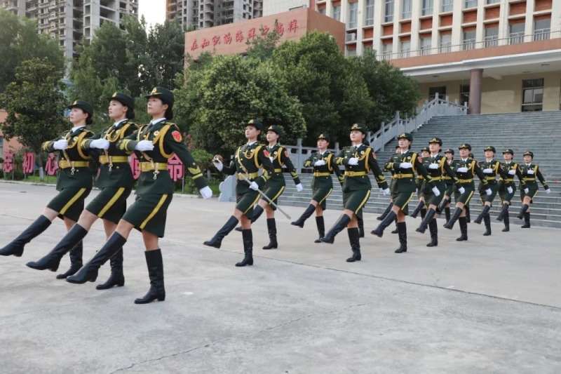 暑期的热浪挡不住青春的执着。为备战全国大学生国旗护卫队展示赛,队员们顶着烈日集训,汗水浸透衣衫仍不懈怠。她们身姿挺拔,正步落地铿锵有力,每个动作都以军事化标准精雕细琢,从齐步换正步的精准衔接,到敬礼升旗的庄严神圣,皆藏着对使命的敬畏。