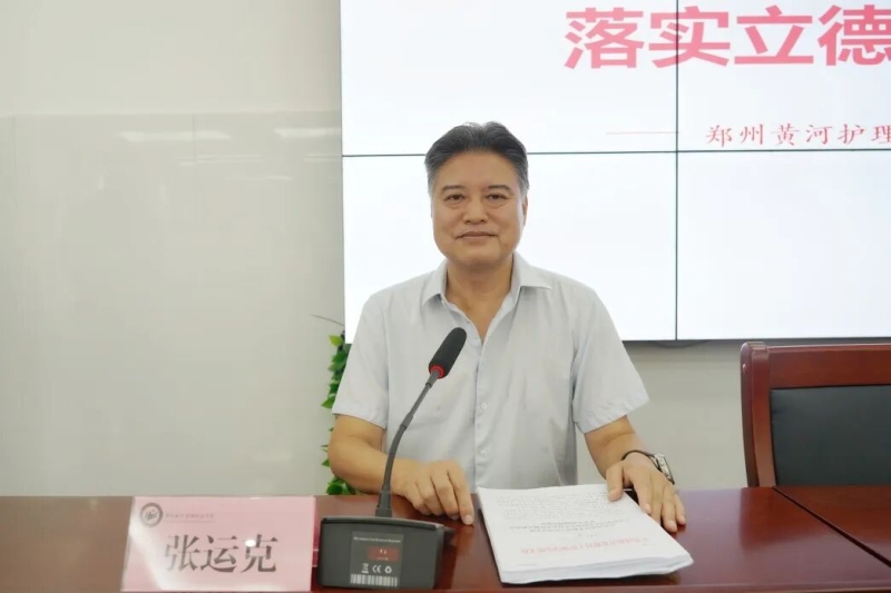 党委书记张运克教授以《党建引领,争做模范,落实“立德树人”根本任务》为题,强调各级干部要做深入学习党的方针政策的模范,点亮思想明灯;做坚定“四个自信”,做到“两个维护”的模范,筑牢政治根基;做遵纪守法的模范,树立行为标杆;做师德师风的模范,涵养育人清泉;做实干兴校的模范,激发奋进力量;做创先争优、敢于担当的模范,勇立时代潮头;做团结协作、维护大局的模范,汇聚发展合力;做管理、教学、技能家的模范,树立真威信;做学生的领路人,成为“三全育人”的模范,点亮青春航程;做拒腐防变、廉洁奉公的模范,永葆清廉本色。