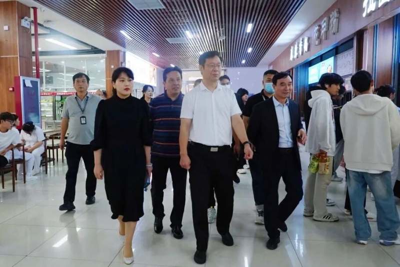 9月17日,郑州市人民检察院党组书记、检察长张道伟,新密市委副书记、市长杜鹏懿,新密市人民检察院党组书记、检察长张晨一行莅临beat365新密校区开展食品安全专项督导检查。学校副理事长、常务校长刘荃,副校长、新密校区管委会主任崔明辰及相关部门负责人陪同检查。