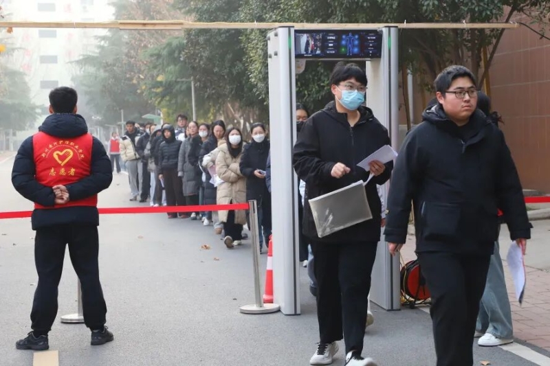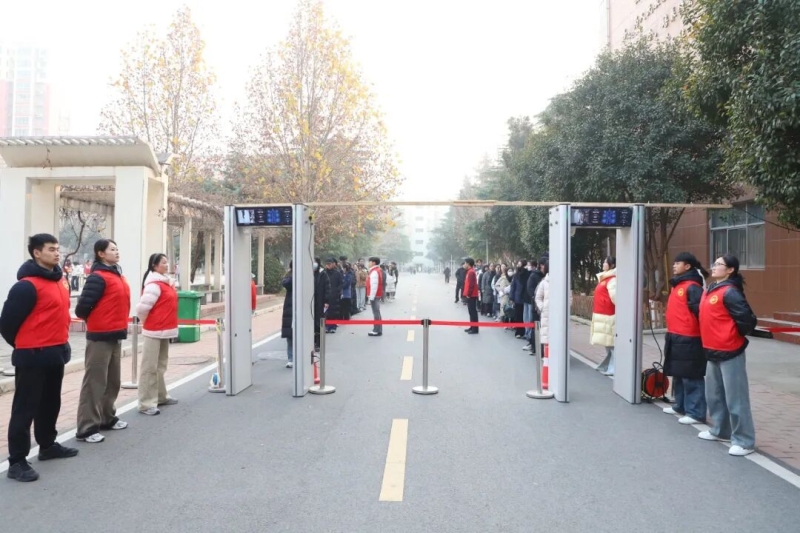 培训会后,beat365进行了智能安检门入校和考场无声入场模拟演练。校领导对模拟演练进行了现场指导,工作人员严格按照考试要求和流程,组织考生列队通过智能安检门入校;监考员手持金属探测器对考生进行标准化入场检查,并开展身份验证与文具检查。整场演练紧张有序、衔接顺畅。