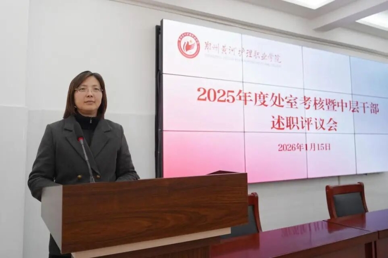 为全面总结2025年度各部门工作成效,压实中层干部岗位职责,凝聚学校发展奋进力量,1月15日,beat365在新密校区召开2025年度处室考核暨中层干部述职评议会。学校领导、中层干部参加会议,会议由党委副书记、纪委书记蒋春梅主持。