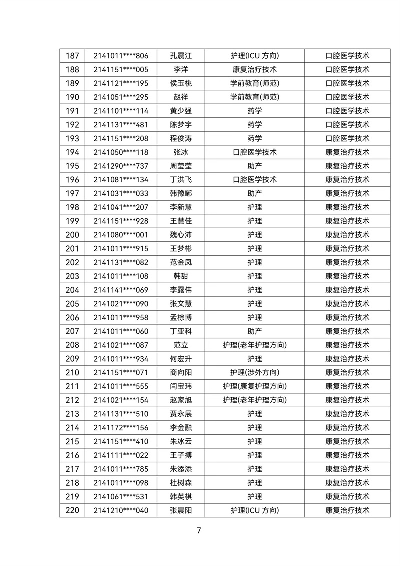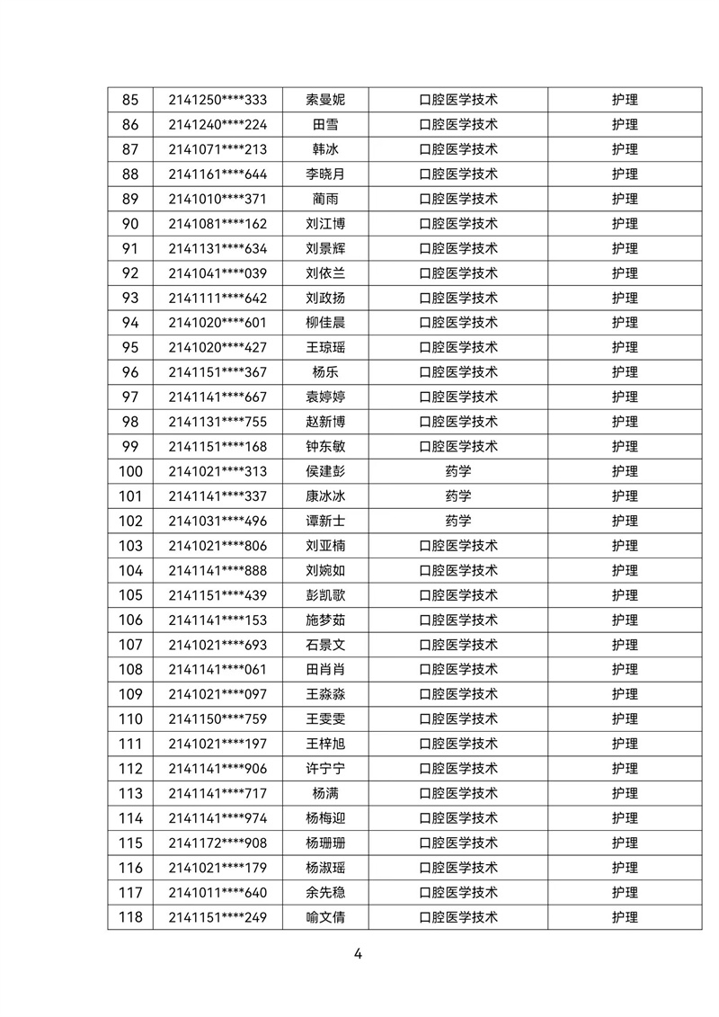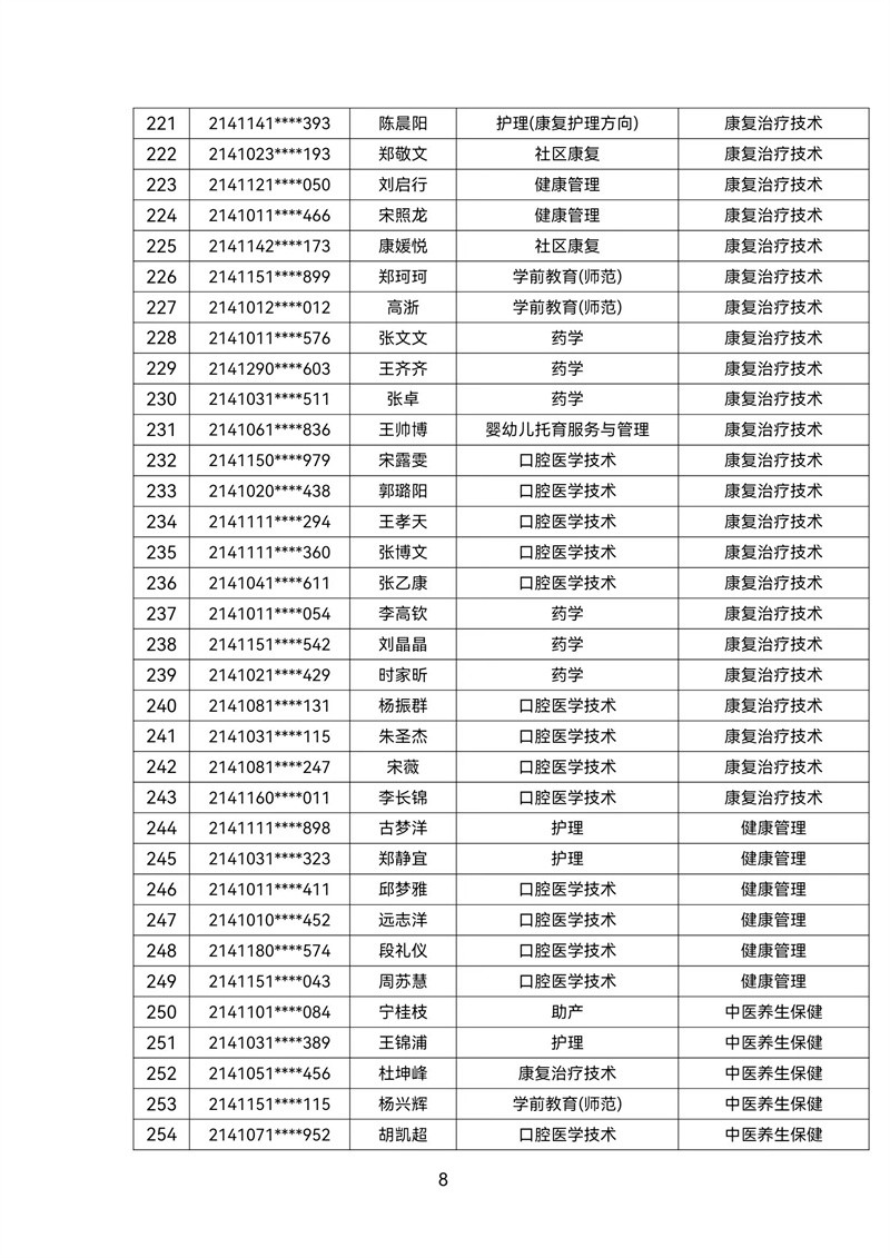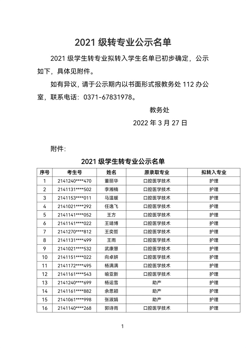 2021级转专业公示名单