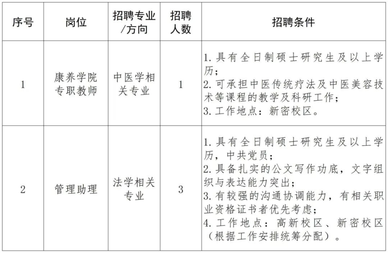 三、招聘岗位及专业要求