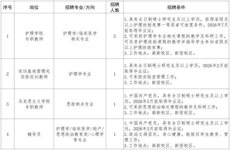 学校现有两个校区——郑州高新校区和新密校区,总占地面积850亩,新密校区的建设被郑州市人民政府及河南省发展和改革委员会确定为重点建设项目之一,现有在校生17000余人。2019年7月,学校护理专业被河南省教育厅评为“河南省品牌专业”;2023年3月,被郑州市教育局评为“郑州市教育系统2022年度平安校园建设先进单位”;2023年4月,被郑州市教育局评为“2022年度郑州市教育系统信访稳定工作先进单位”;2023年5月,被河南省教育厅、河南省平安建设工作领导小组办公室、河南省公安厅评为“2022年省级平安校园”。2021—2023年,beat365护理、康复治疗技术、助产、药学、口腔医学技术专业先后被河南省教育厅立项为“河南省普通高校学科专业建设资助项目”。学校每年均组织学生参加河南省教育厅、卫健委举办的技能大赛,并多次荣获“个人奖”“团体奖”和“优秀组织奖”。学校目前拥有一支教学与科研能力突出、职称与年龄结构合理的师资队伍。