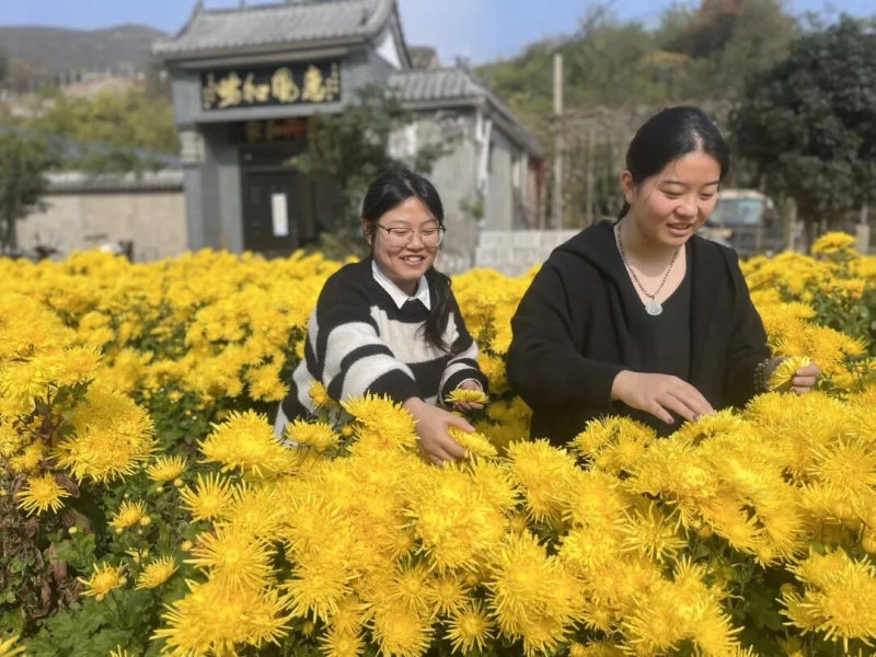 【药学与医学技术学院】beat365药学与医学技术学院师生到新密中药材种植基地开展菊花采摘活动