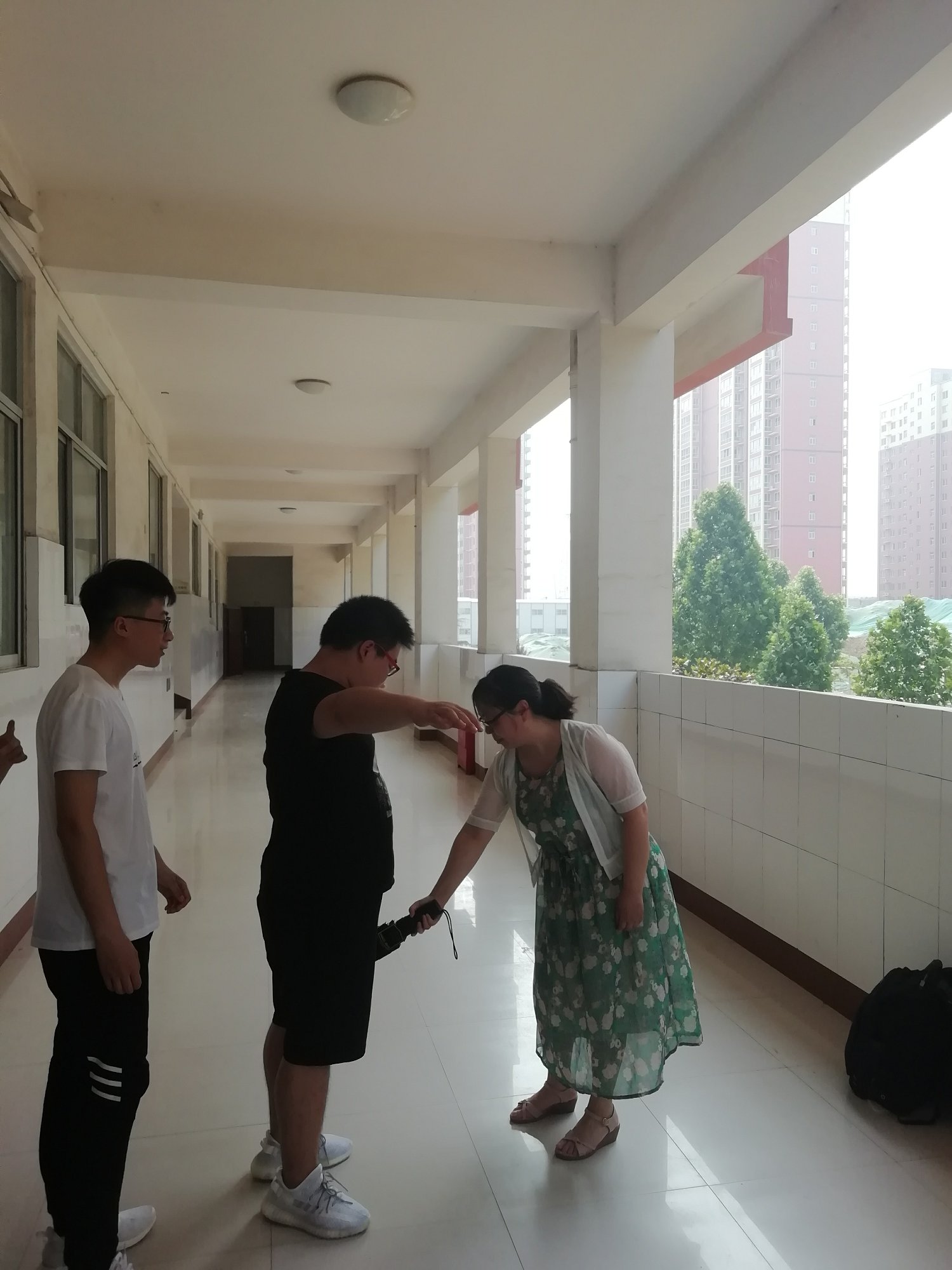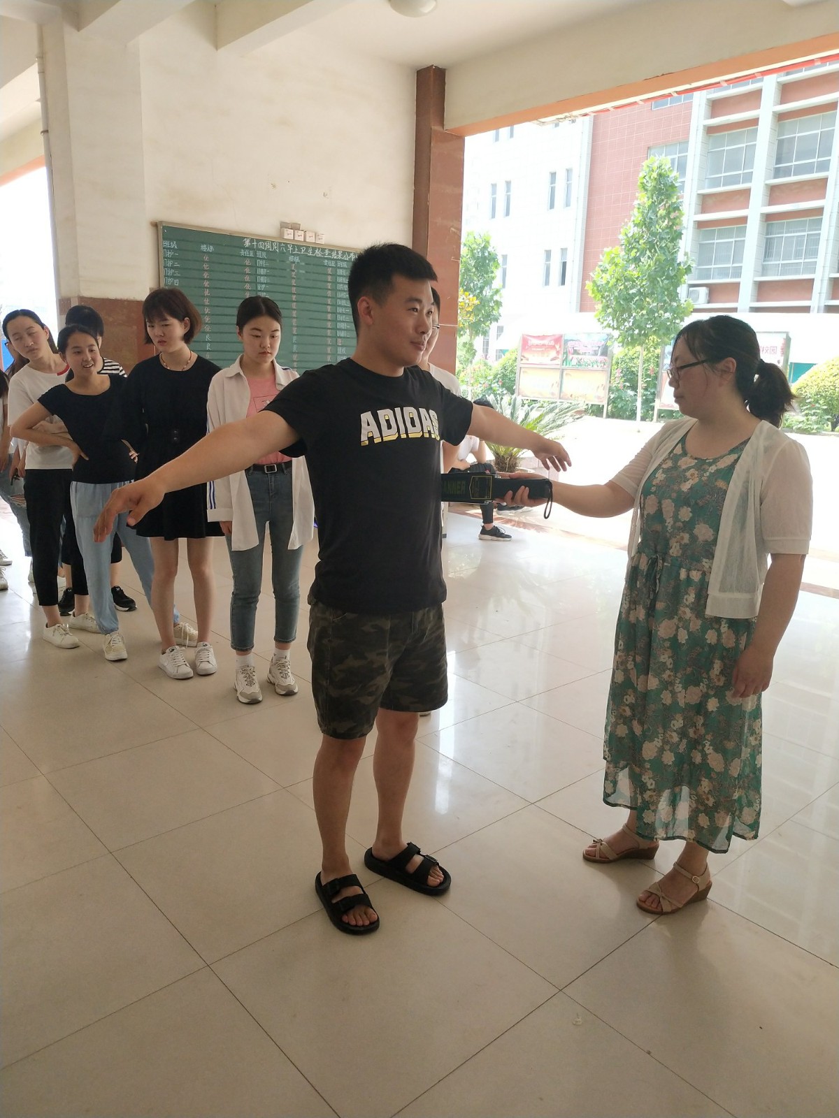 上午8:30,吴老师在模拟教室门口按从上到下,从前到后的顺序对每一位考生进行了认真细致的检查,尤其是对口、耳、鞋、腋下等重点部位进行了检查。