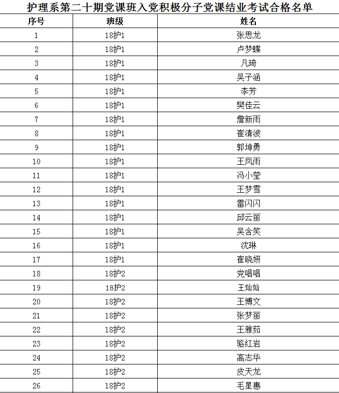 关于护理系第二十期入党积极分子结业考试成绩合格名单的公示