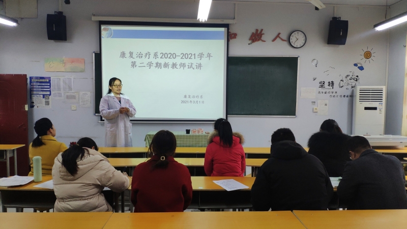 为进一步加强教学管理,提高教学质量,严把新教师上岗关, 2021年3月1日下午,康复治疗系在1号教学楼313教室组织开展了新任课教师试讲活动。出席本次活动的有康复治疗系主任王亚培、康复专业教师等。
