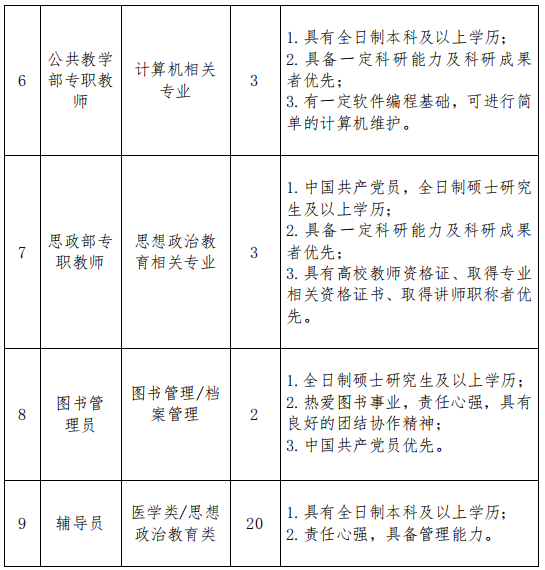 三、招聘岗位及专业要求
