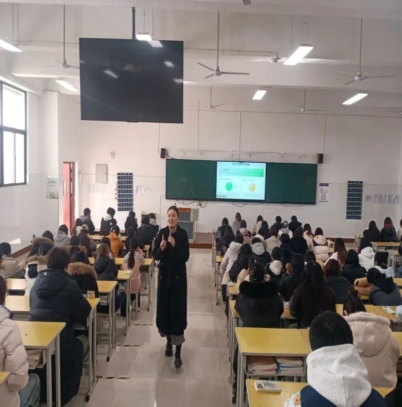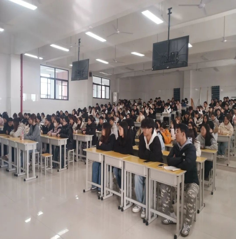 在高新校区,讲座于15:00在餐厅四楼举行,由焦凯丽老师主讲。各班派出的10名学生代表全程投入,认真记录内容,现场多次引发共鸣。讲座从现实学习场景切入,结合高职学生在实训与课堂中的专注挑战,帮助同学们找到可执行的改变方向。