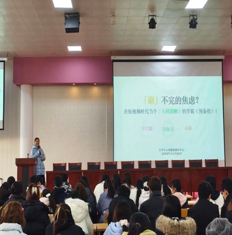 为帮助学生应对短视频时代带来的注意力分散与焦虑困扰,大学生心理健康教育中心于11月26日在高新校区与新密校区同步开展了《短视频时代提升专注力》专题讲座。