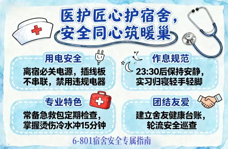 本次活动以“安全为基、文化为魂”为宗旨,创新推出四大特色活动,激发全校学生参与热情。手抄报创作比赛中,同学们围绕违规电器危害、消防安全、防诈骗等主题挥毫泼墨,将安全知识融入创意画作;宿舍安全短视频大赛里,学生们化身创作者,通过警示短片、情景小剧场等形式,直观演绎防火、防盗、防意外的实用技巧;宿舍安全公约设计制作比赛以宿舍为单位开展,大家结合日常起居制定出兼具实用性与趣味性的安全准则;宿舍安全隐患大排查活动则引导学生自查自纠,主动清除私拉电线、堆积杂物等隐患,将安全责任落到实处。