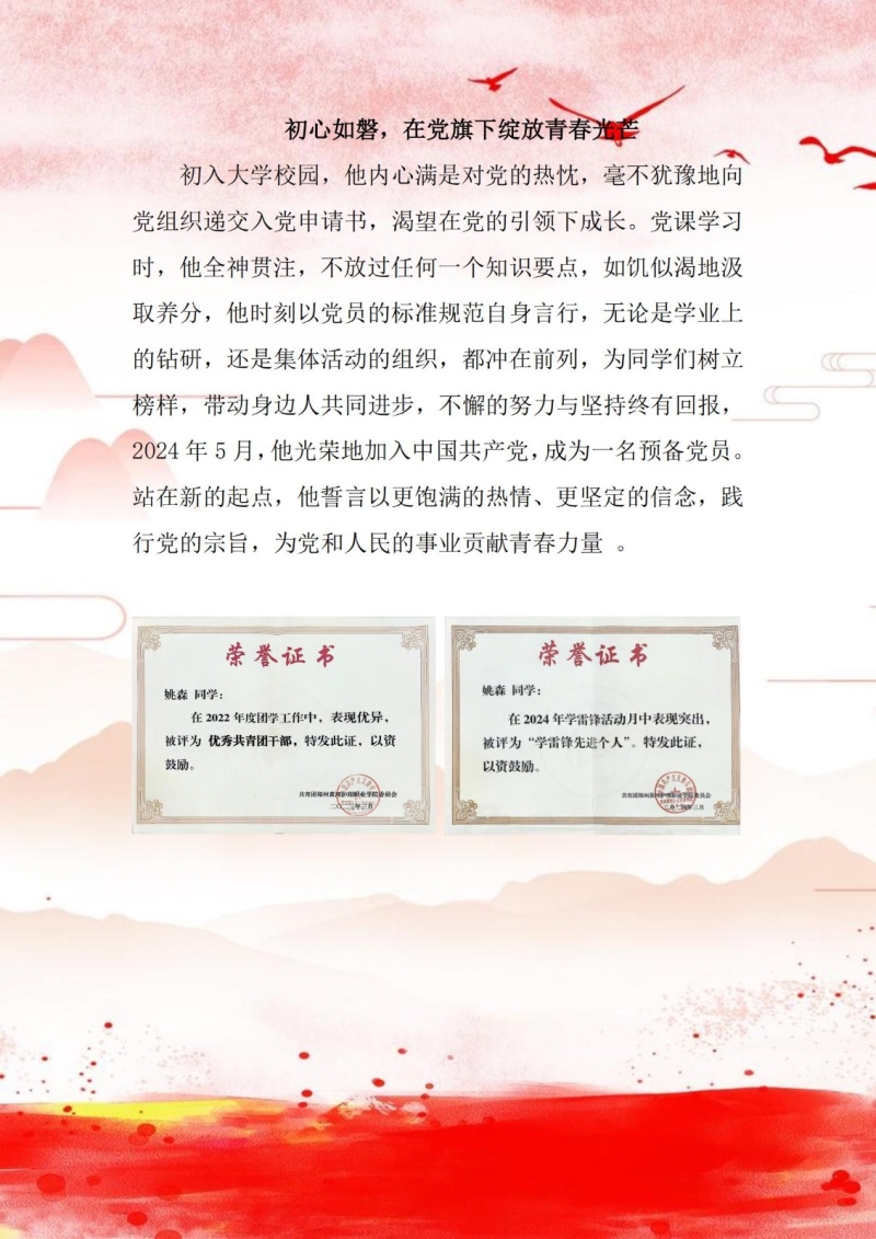 国奖风采姚森:追逐梦想 不负韶华