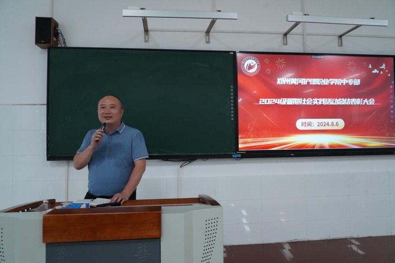 8月6日下午,中专部2024级第一批暑期社会实践活动总结表彰大会在C区102室举行。参加大会的有招办刘伟主任,资助管理中心夏柯柯主任,辅导员刘利红老师、毛明峰老师及全体教官。本次总结表彰大会由中专部主任韩广华主持。
